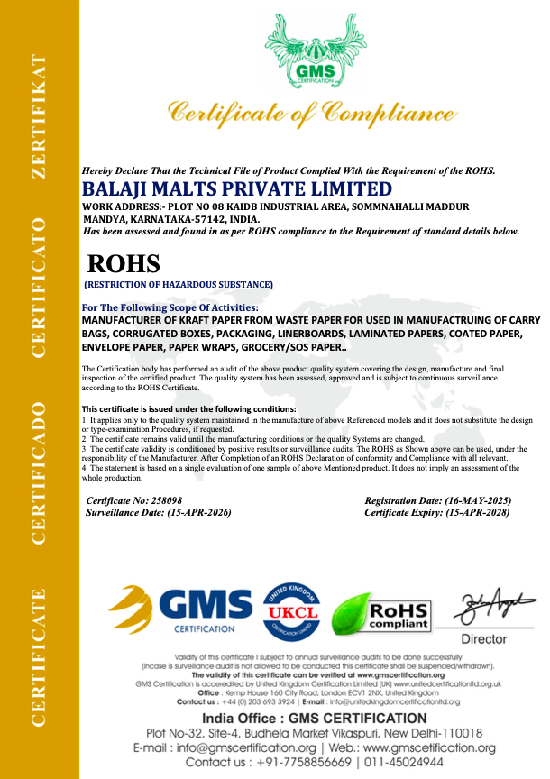 This certificate declares that the product type/model described above complies with the mentioned above European Standard(s). This is to state that the above mentioned product is in compliance with RoHS Directive (2011/65/EU) as Amended (EU) 2015/863 of the European Parliament and Commission Decision 2005/618/EC on the restriction of use of certain Hazardous Substances